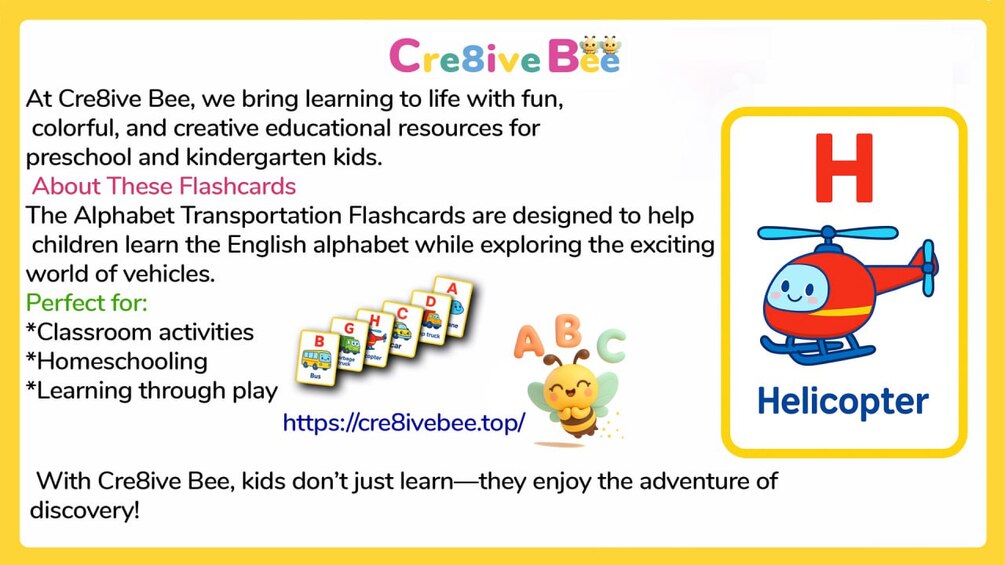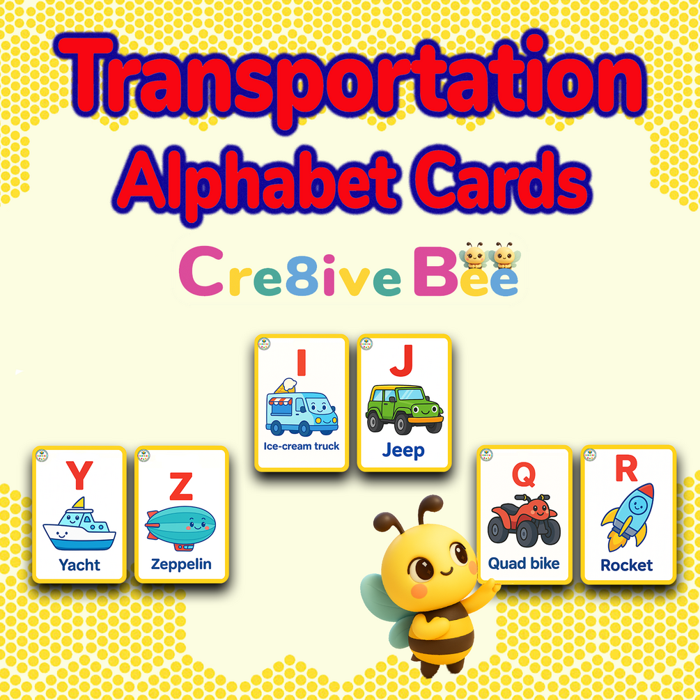 Fun and colorful A–Z flashcards featuring vehicles to help kids learn the alphabet with joy! Printable, easy to use, and perfect for preschool and kindergarten learning.